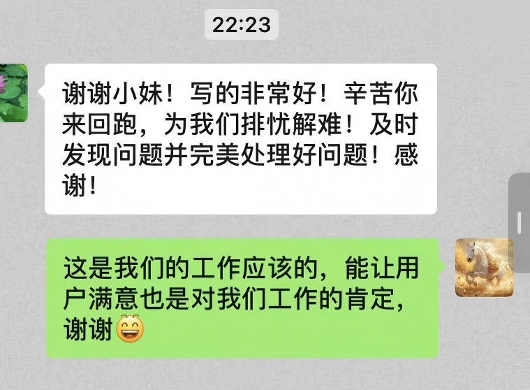 這位用戶表示,要將隨州水務(wù)員工的專業(yè)與熱情分享給身邊人,直言“你們工作時熱情的態(tài)度值得我們學(xué)習(xí)”。面對用戶的盛贊,網(wǎng)格員一句“你再表揚我就要飄了”的俏皮回應(yīng),讓這場服務(wù)與被服務(wù)的互動更添溫情。